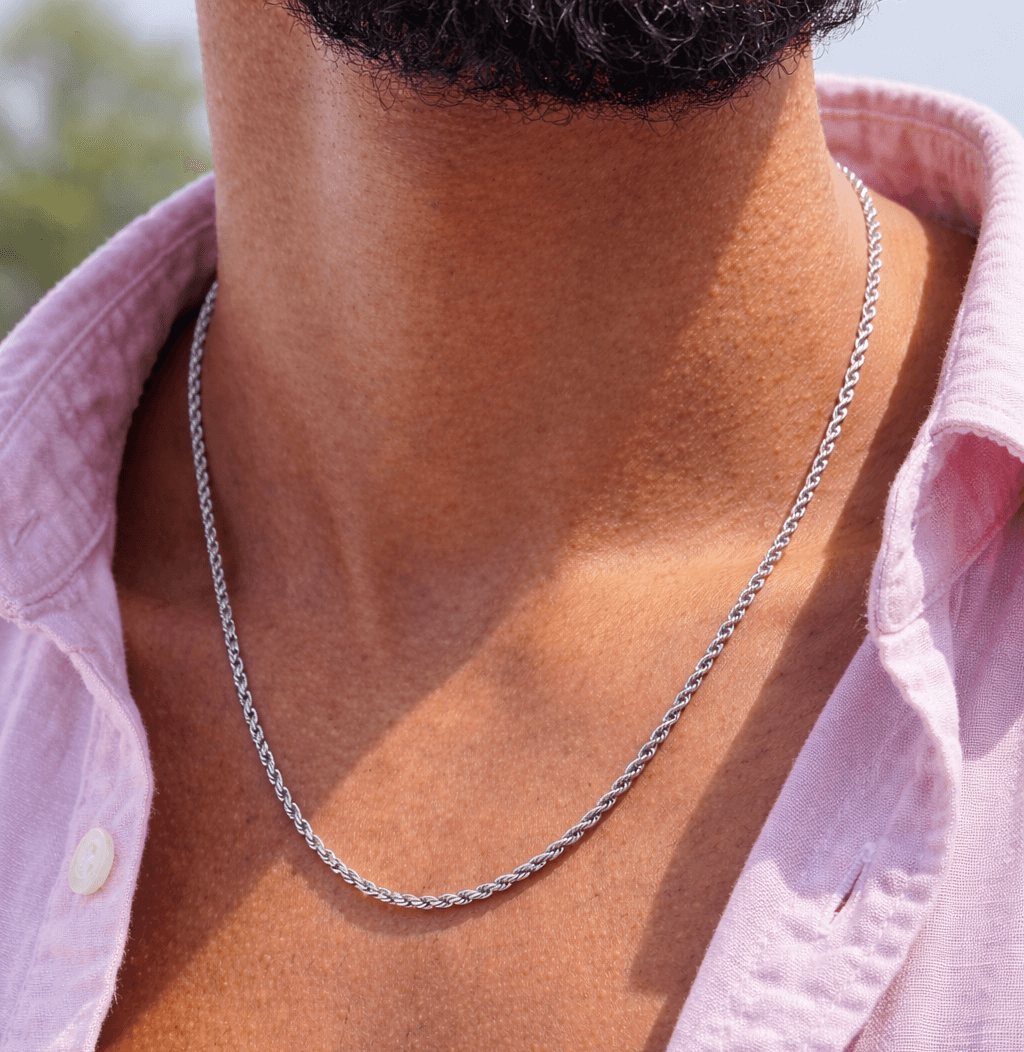 Add a touch of modern sophistication to your wardrobe with the Double Silver Stainless Steel Men’s Necklace.