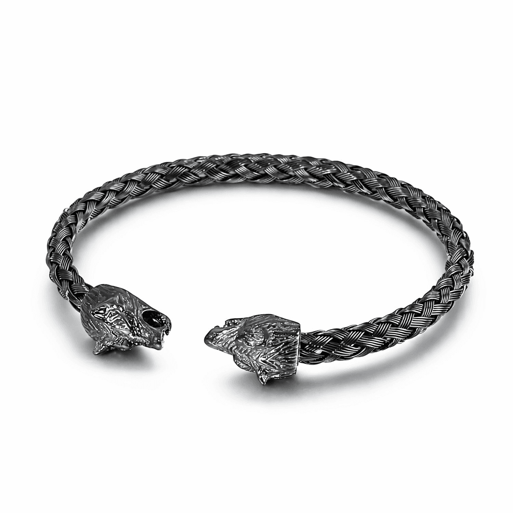 Bold double wolf black stainless steel men’s bracelet in Egypt. Durable, stylish, and perfect for everyday or statement wear.