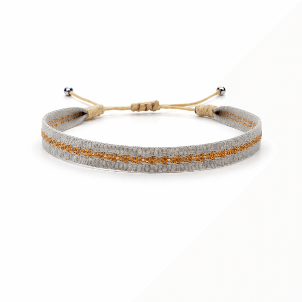 The Grey Golden Line Fabric Men’s Bracelet features a modern woven design with a stylish grey base accented by a subtle golden line, creating a clean and refined look. Made from durable fabric with an adjustable knot closure, this men’s bracelet in Egypt offers a flexible fit, lightweight comfort, and is perfect for everyday wear, casual outfits, or layering with other bracelets.