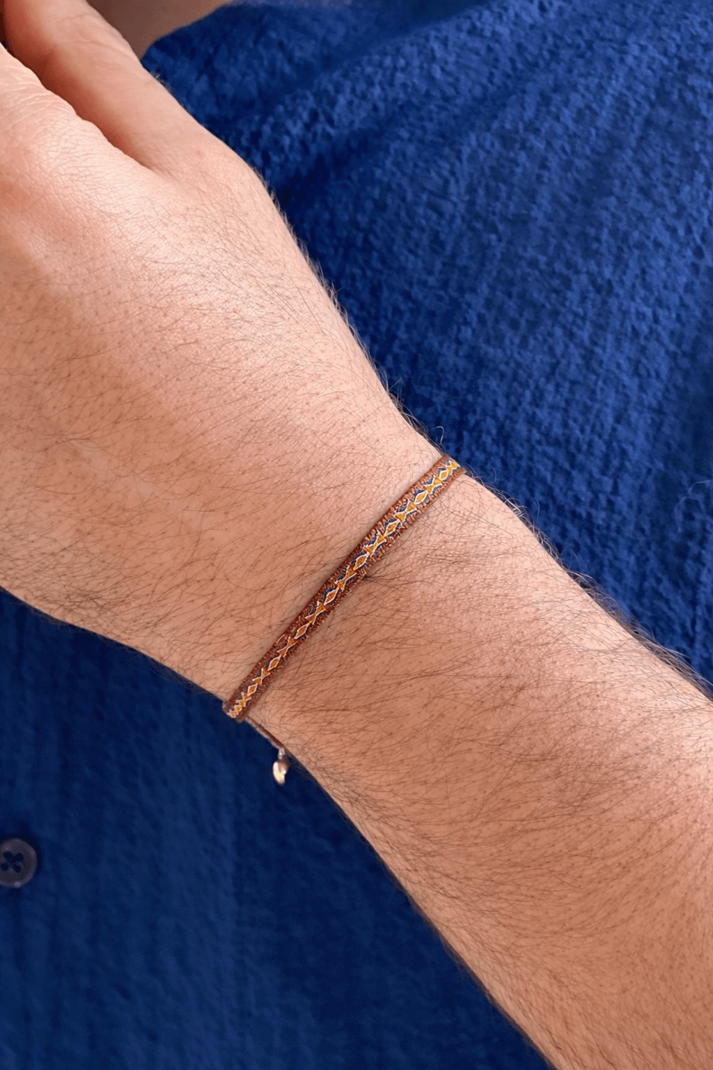 The Burnt Orange Fabric Men’s Bracelet features a modern woven design in a rich burnt orange tone, adding a warm and stylish touch to your look. Made from durable fabric with an adjustable knot closure, this men’s bracelet in Egypt offers a flexible fit, lightweight comfort, and is perfect for everyday wear, casual outfits, or layering with other bracelets.
