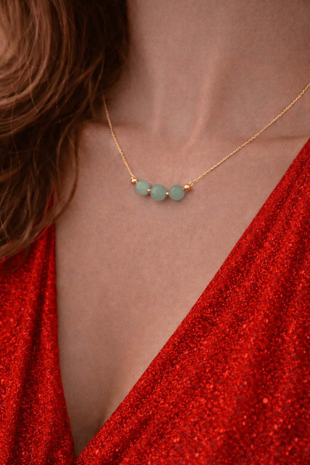 A delicate stainless steel necklace with green beads, designed for a minimalist and elegant everyday look.